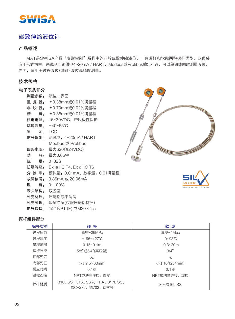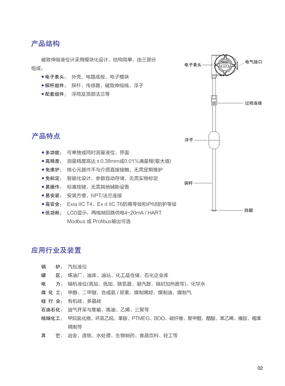 SWISA的“變形金剛”系列磁致伸縮液位計(jì)是高精度、高可靠性的創(chuàng)新型產(chǎn)品,它的出現(xiàn)很好的解決了極惡劣工況下的液位、界面測(cè)量。由于采用磁致伸縮技術(shù)決定了其測(cè)量過(guò)程不受溫度、壓力、介電常數(shù)等因素變化的影響,其高精度、高穩(wěn)定、免維護(hù)等特性,很好的避免了傳統(tǒng)電浮筒、差壓變送器、雷達(dá)等其它液位產(chǎn)品在現(xiàn)場(chǎng)應(yīng)用中存在的缺陷,故廣泛應(yīng)用于各種液位、界面的高精度測(cè)量。
